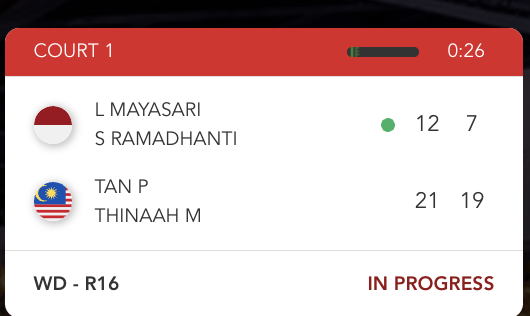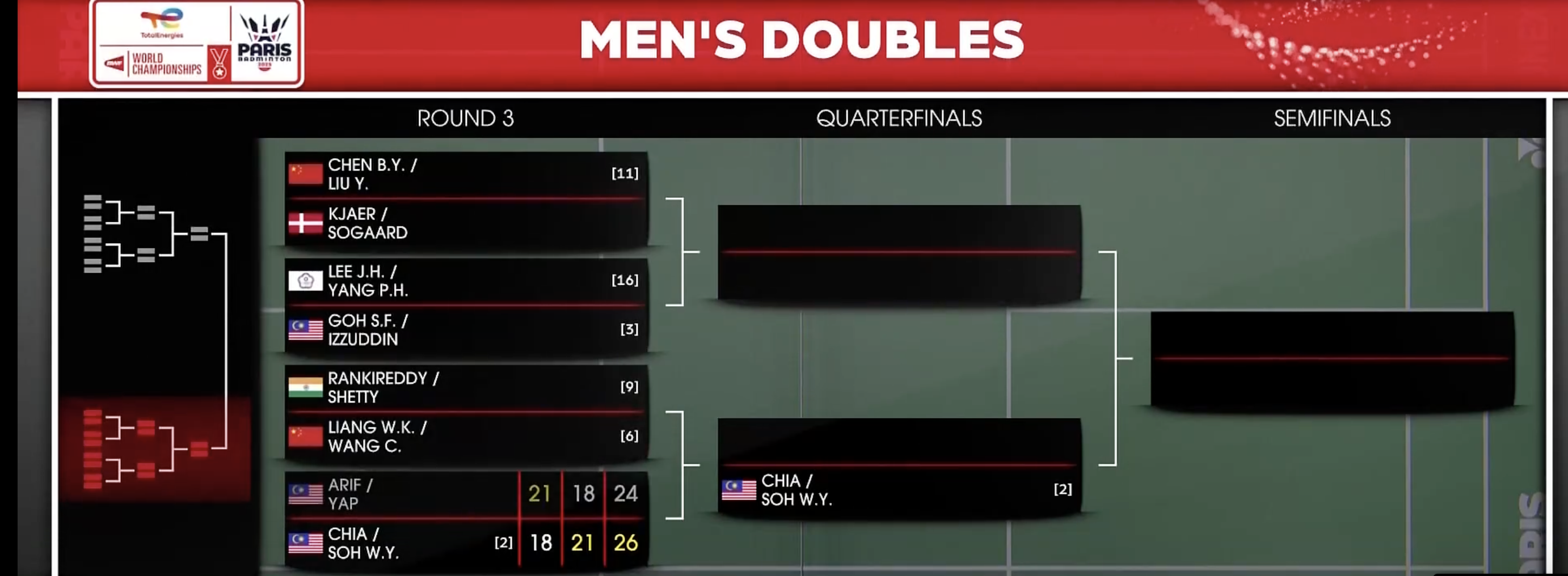 Aaron Chia and Soh Wooi Yik await the winners of this match. And the Malaysians have come through a thriller 26-24 in their match, wowza!