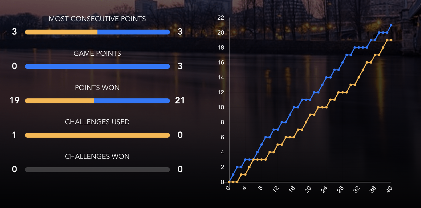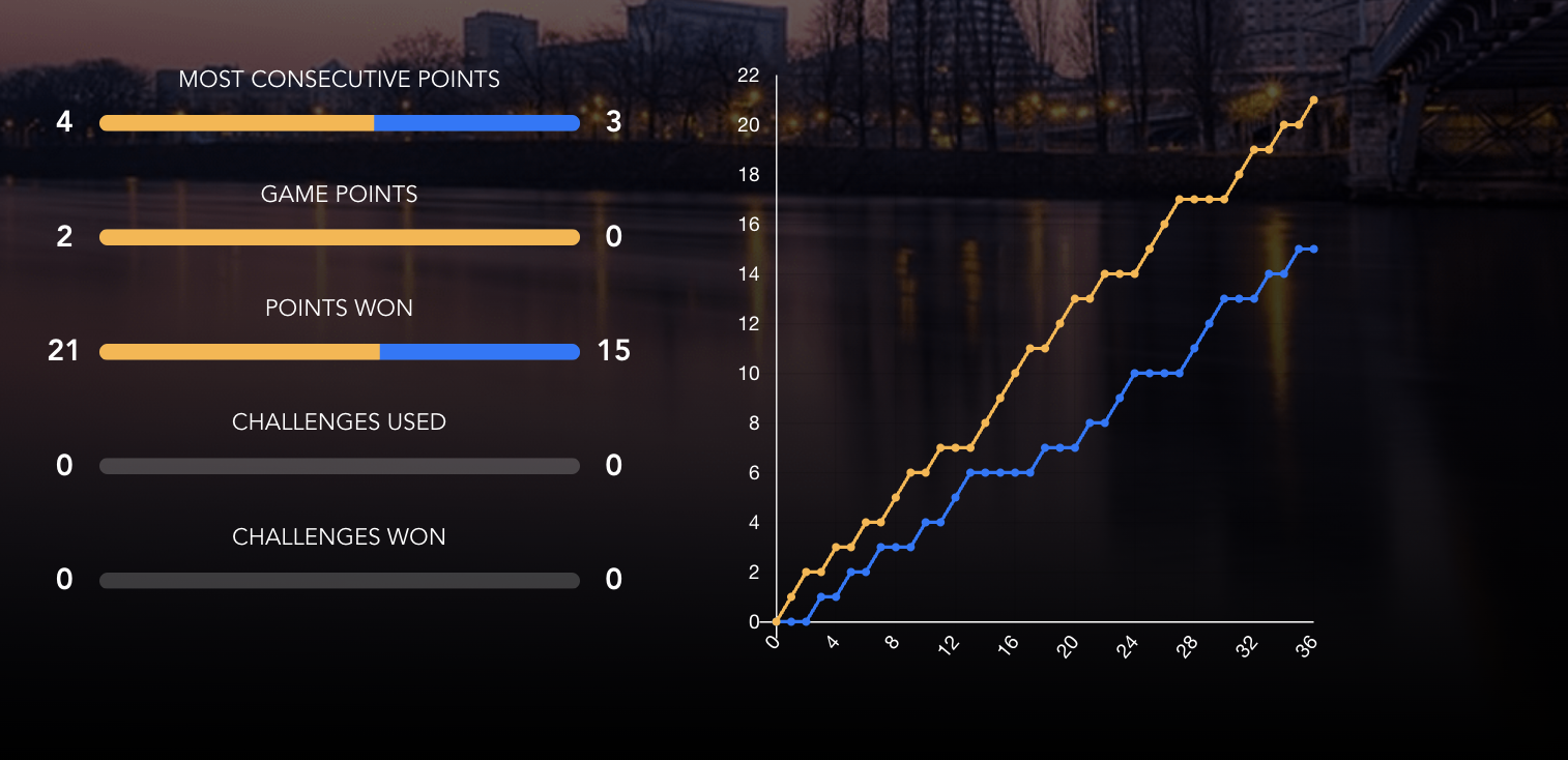The average rally length in this match so far is 7.7 shots, informs Gill Clark! That is a stat we would love to have access too.