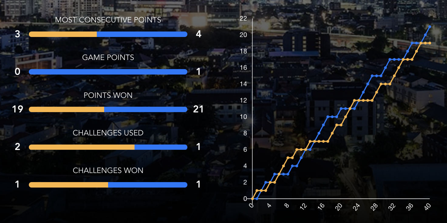 But the Indians do well to cut the lead to two points... and Man-Tee eventually take a 2-point lead as Satwik sends a flick serve long.
