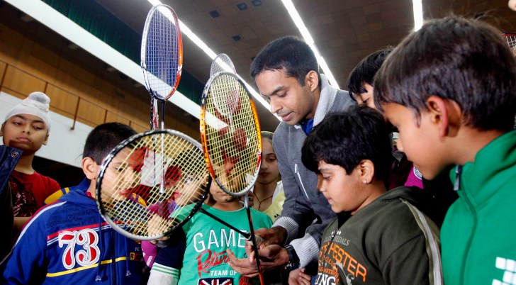 Pullela Gopichand interacts with the trainees of Panjab University during his visit in Chandigarh on January 02 2013. (Express photo by Sumit Malhotra)