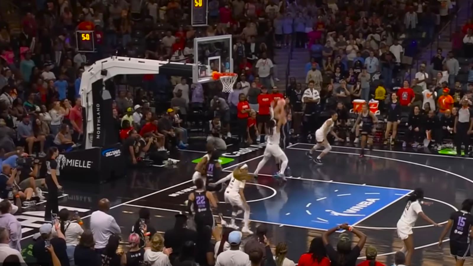 The bizarre incident happened during the WNBA game between Golden State Valkyries and Atlanta Dream. (Screengrab via WNBA YouTube)