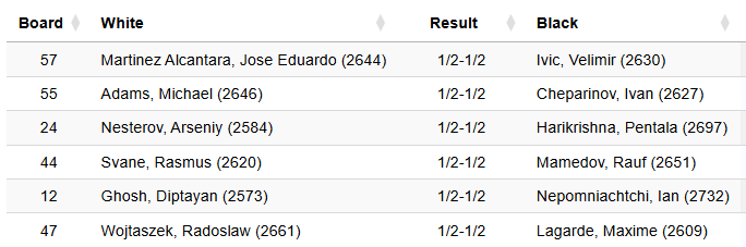 Early result coming in: Two India vs Russia (FIDE) clashes end in a draw. Diptayan Ghosh and Ian Nepomniachtchi ended their clash with threefold repetition.