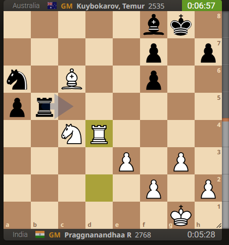 GM R Praggnanandhaa (2771) vs GM Temur Kuybokarov (AUS) 2535