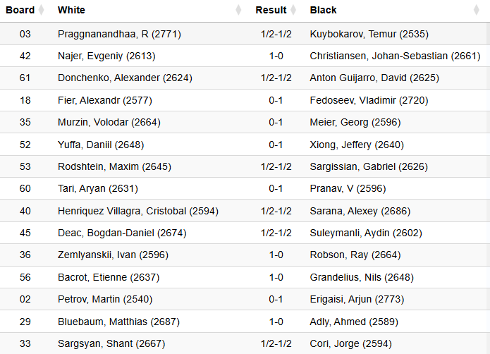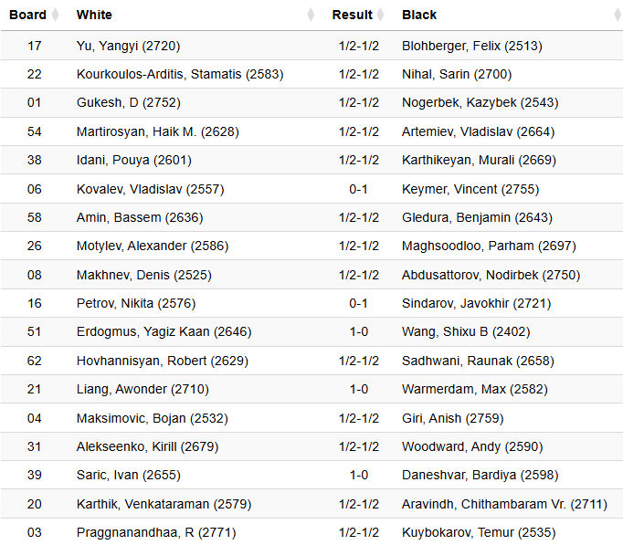 The likes of D. Gukesh, Arjun Erigaisi, R. Praggnanandhaaa, Vincent Keymer, Levon Aronian, Wesley So and Anish Giri will be in action today so stay tuned as we bring you all the live action straight from Goa.