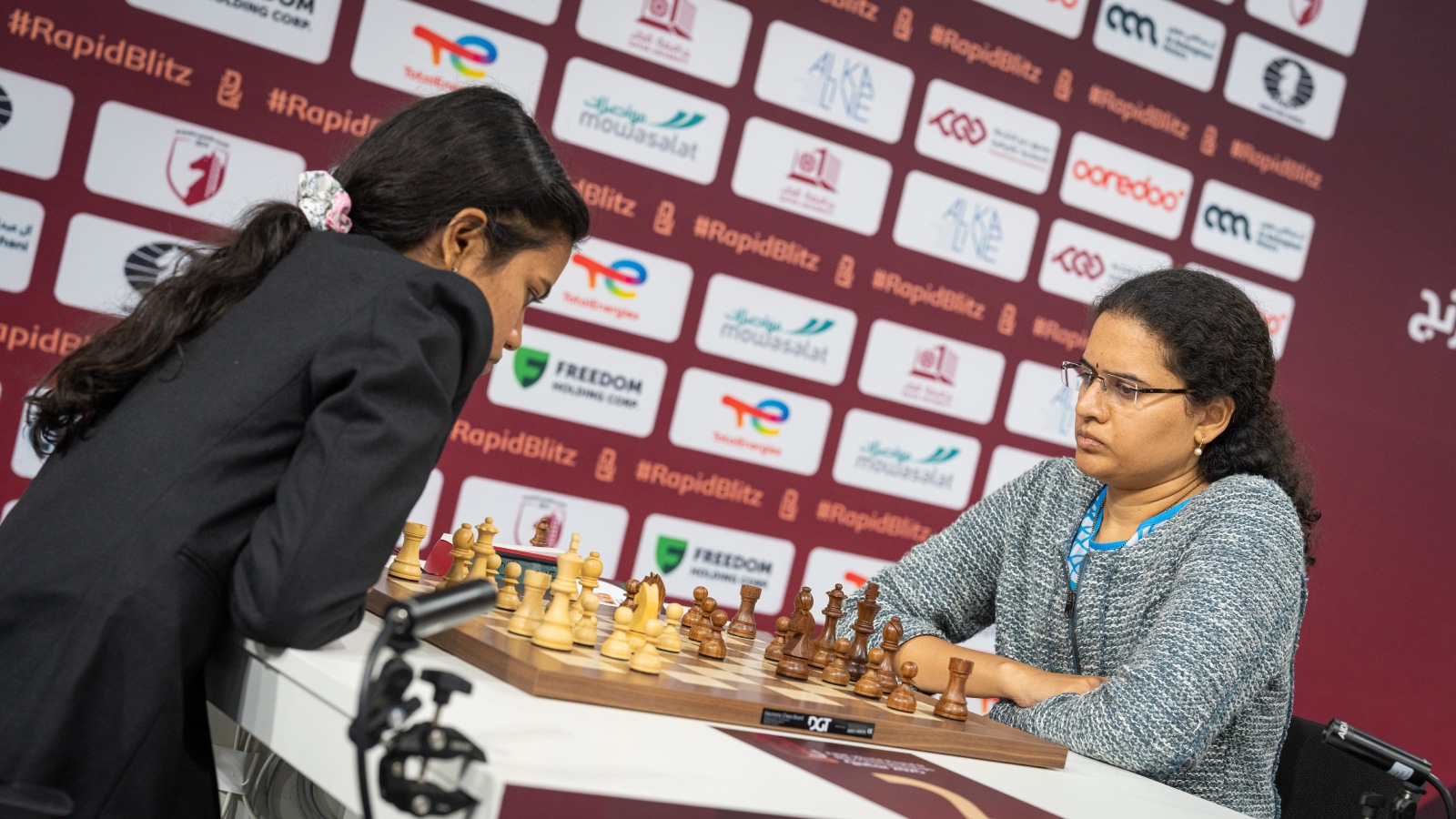 Savitha Shri B held Koneru Humpy to a draw in the final round of World Rapid Championship which denied Humpy to defend her title. (PHOTO: FIDE/Lennart Ootes)