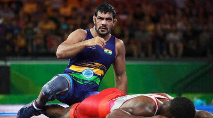 Sushil Kumar is through to the 74kg final. Beats Connor Evans of Australia 4-0 in a victory by fall in the first round itself