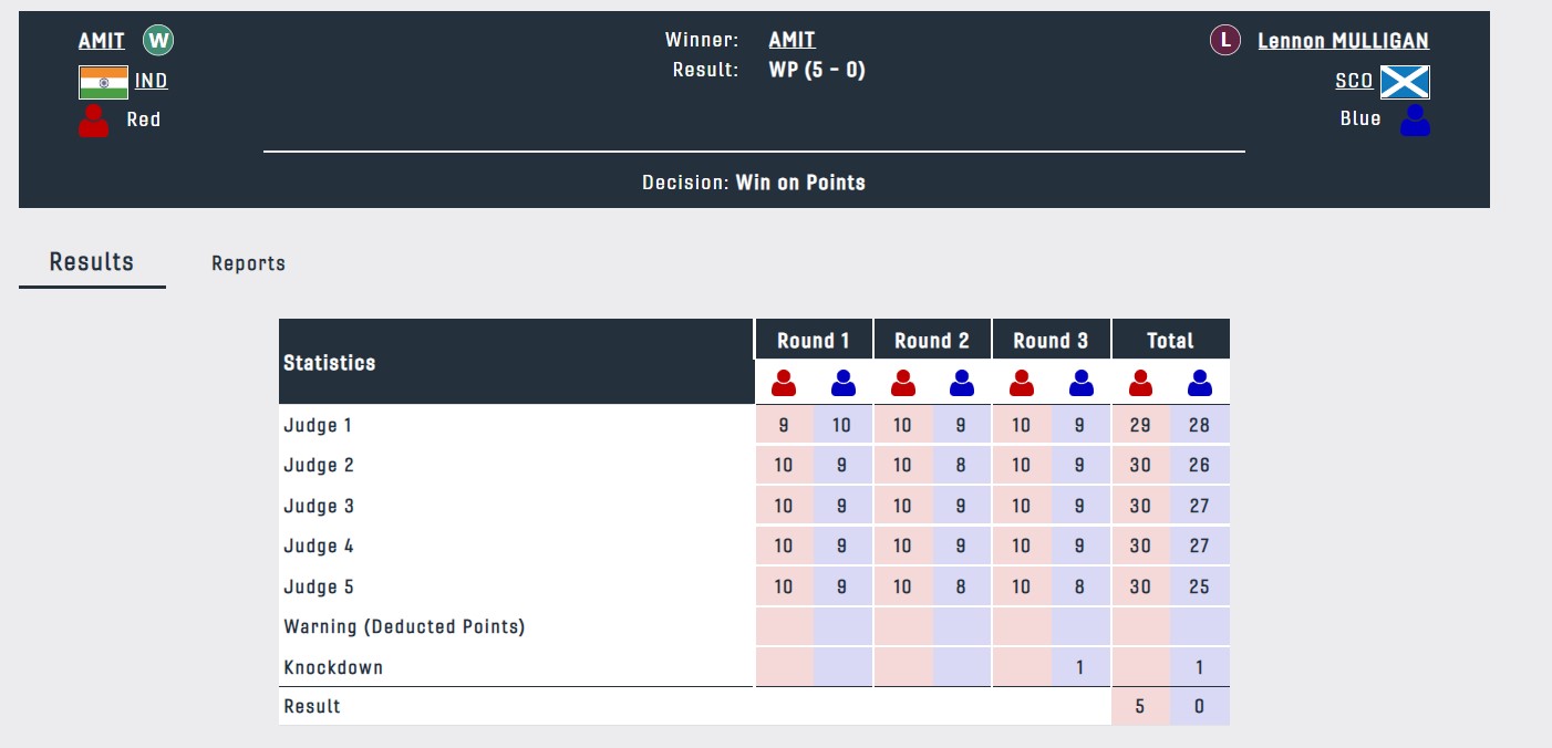 Men's +92Kg - Quarter Final: Sagar wins with an unanimous decision and beats Keddy Agnes from Seychelles. Another medal confirmed for India