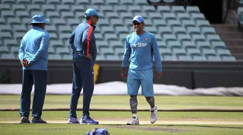 India captain MS Dhoni and team director Ravi Shastri inspect the pitch at the SCG on Monday. (Source: AP)