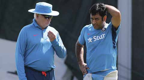 MS Dhoni in serious talks with coach Duncan Fletcher ahead of the semi-final. (Source: AP)