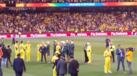 Sachin Tendulkar and Glenn Maxwell hug after the World Cup 2015 final between Australia and New Zealand. (Source: Video Grab)
