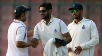 The task for Punjab was going to become even more difficult with Gambhir starting with the spinners straight away. Varun Sood sent the openers packing by the eighth over with deliveries that skid on and from there Manan took over. The strategy was to bowl straight, making the batsmen play on a turning track. The fact that there were seven batsmen dismissed bowled and one out leg before in the Punjab innings was a general indicator of the lines Delhi bowled.