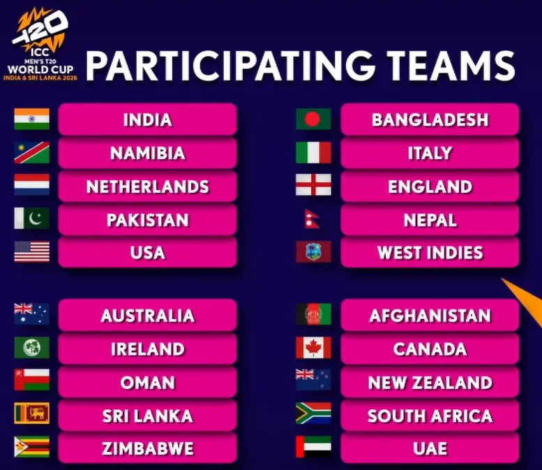 T20 World Cup 2026 Schedule Announcement: Here are all the 20 teams