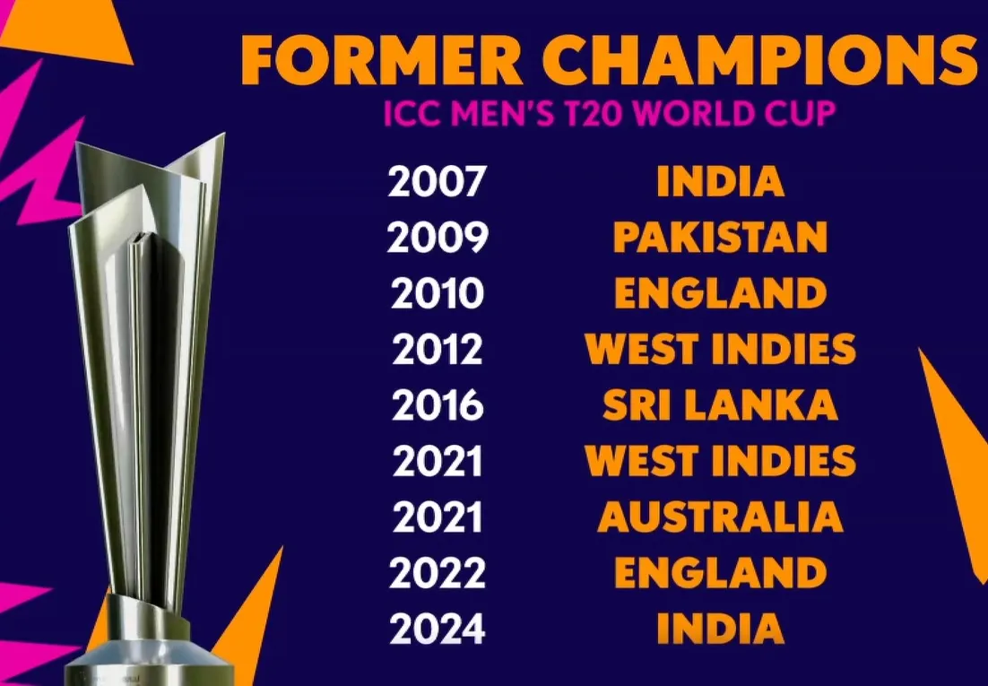 Here's a list of former T20 World Cup champions from the past: Defending champions and hosts India have won the event twice. So have West Indies and England. Pakistan, Sri Lanka, and Australia have won the event one time each.