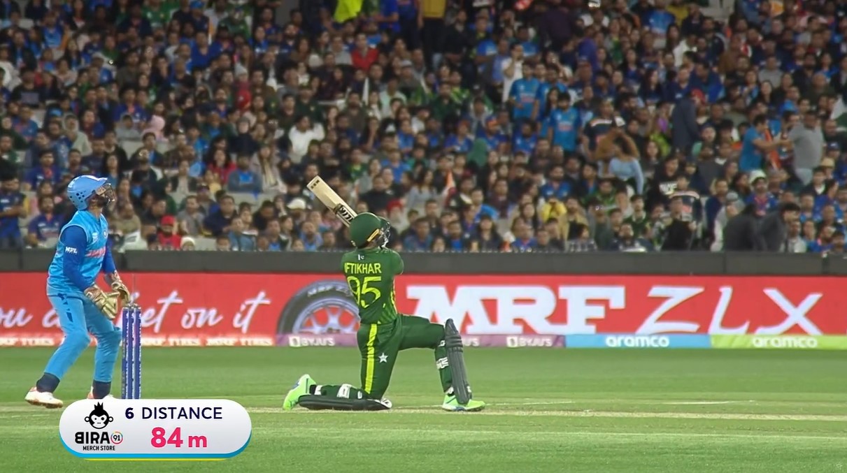 Mihir Vasavda: Iftikhar Ahmed had to wait for 24 balls, but after patiently negotiating the challenging batting conditions, the Pakistan batsman cleared the straight boundary four times in quick succession - thrice in an over. Ahmed, who has a big-hitting reputation, had fore-warned opponents for which he was even pulled up publicly by Wasim Akram. With Pakistan's middle-order coming under scrutiny whenever the openers are dismissed cheaply, Ahmed not only dismissed those concerns but also claimed 'hitting sixes in big Australian grounds is not a problem.'