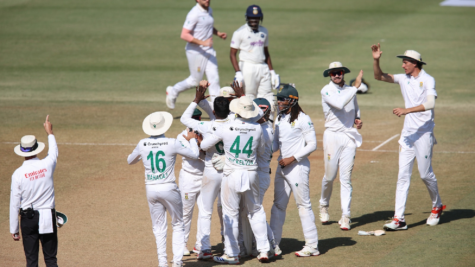 Team South Africa celebrate a wicket during the Day 5 of the 2nd Test match between India and South Africa at ACA Stadium, Guwahati, India, on November 26, 2025. (CREIMAS for BCCI)India (IND) vs South Africa (SA) 2nd Test Day 5 Highlights: South Africa beat India by 408 runs in the second of the two match Test series at Guwahati. Looking to salvage a draw in the final innings India were bundled out for 201 runs with Ravindra Jadeja being the top scorer