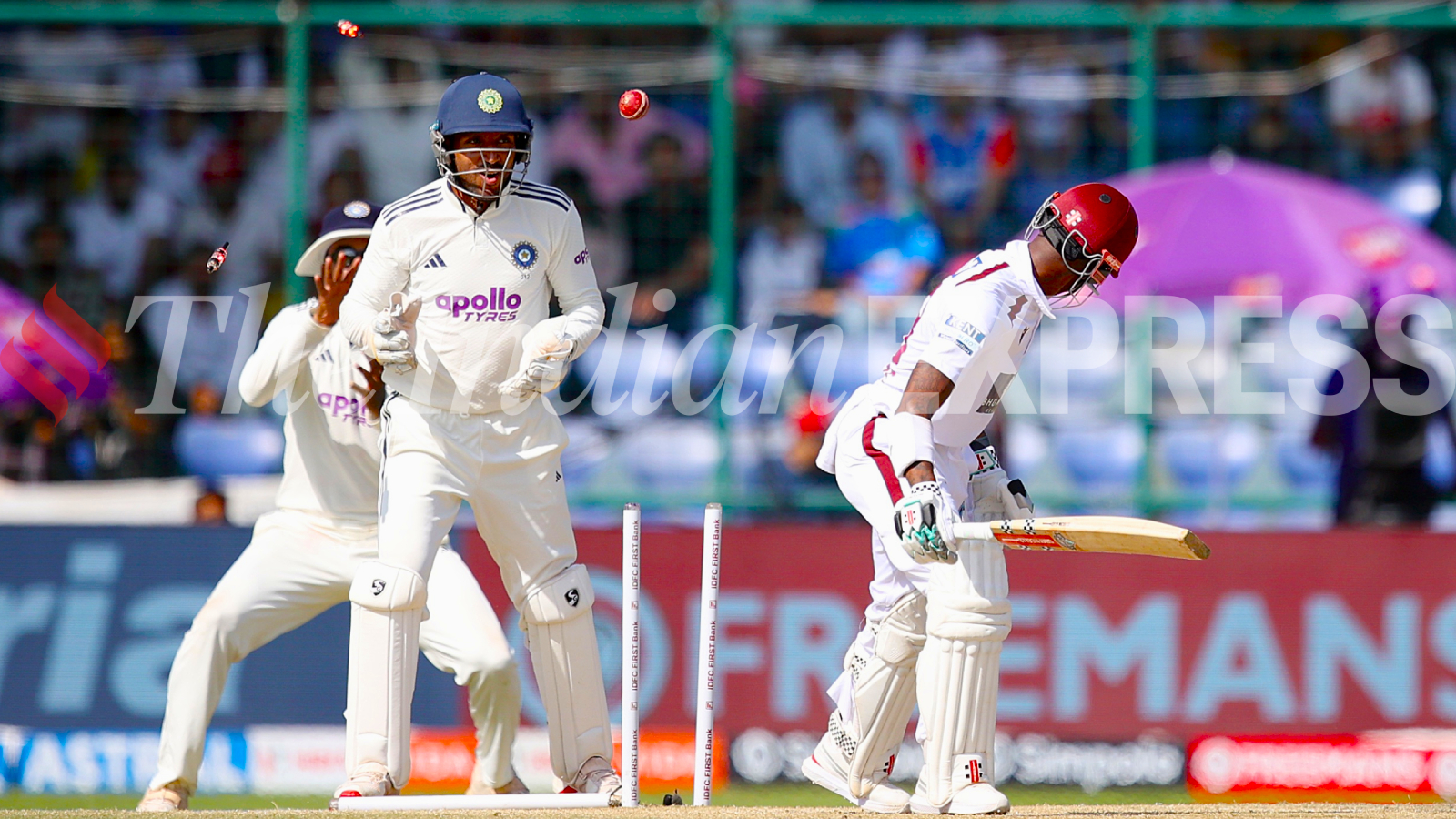 The gorgeous delivery from Kuldeep Yadav to send back Shai Hope captured by The Indian Express' Praveen Khanna