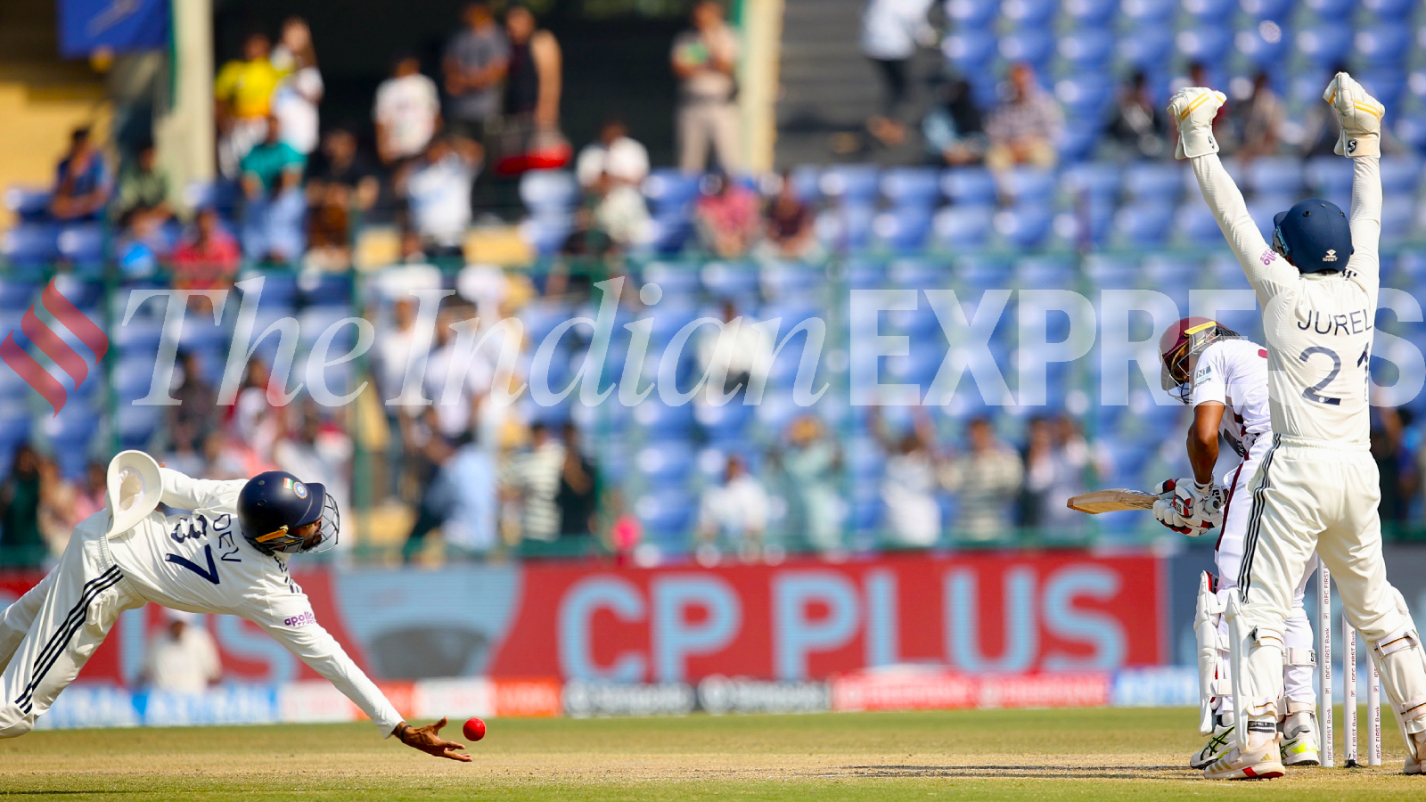 And here's The Indian Express photographer Praveen Khanna's photo showing Shubman Gill's diving catch, which was the final artistic flourish in sending back Chanderpaul.