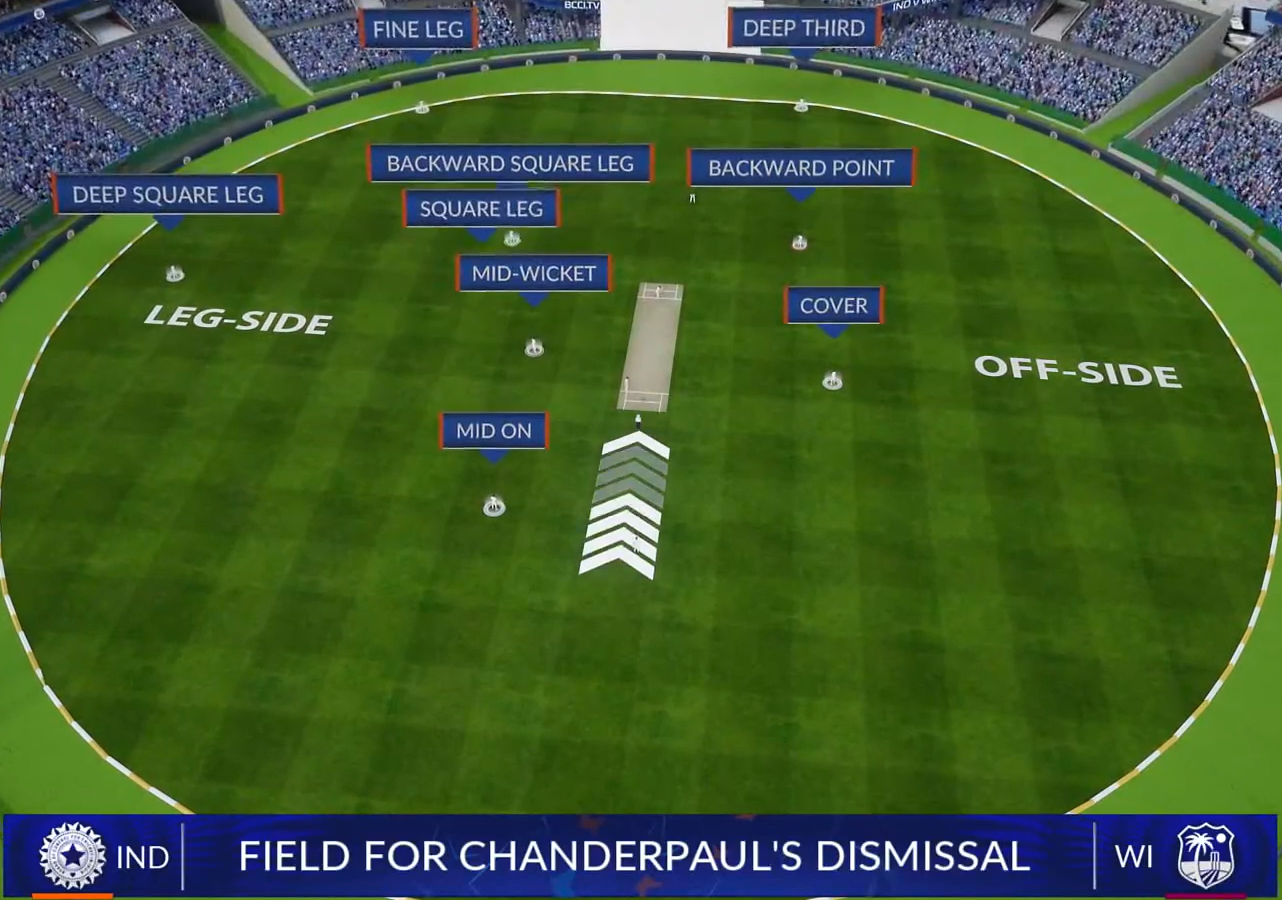 Short ball from Siraj does the trick and India have their first wicket! Tagenarine Chanderpaul tries to hook the ball and ends up slicing it. Captain Shubman Gill comes running down and dives to take a stylish one-handed catch.