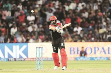 The match against KKR last week summed up RCB’s disastrous campaign this season. Chasing 131, Kohli’s men were dismissed for 49. Three nights later, they would fold for a score of 100 against the Gujarat Lions. For the first time in IPL history, Bangalore were bowled out in two consecutive games. The moment a side gets shot out for 49 in a T20 game, it’s difficult to pick the pieces and get your act together in subsequent games. Their captain was weary and looked around haplessly for that spark of inspiration. That one act of individual brilliance, which would galvanise his side’s sagging spirits. That moment evaporated, tonight, when AB de Villiers, was caught at short cover by Manoj Tiwary early on in their chase. During Bangalore’s irresistible run last year, it was the Protea who had given them the much needed thrust with his insouciant display of batsmanship at the top of the order. However, scores of 8, 5 and 3 in his last three games just summed up their travails this year.