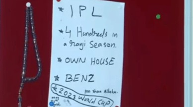 ‘IPL, own house, Benz, 2023 WC’ — is the list of wishes the 26-year-old has written on a board in his house, as shown by Manorama News.