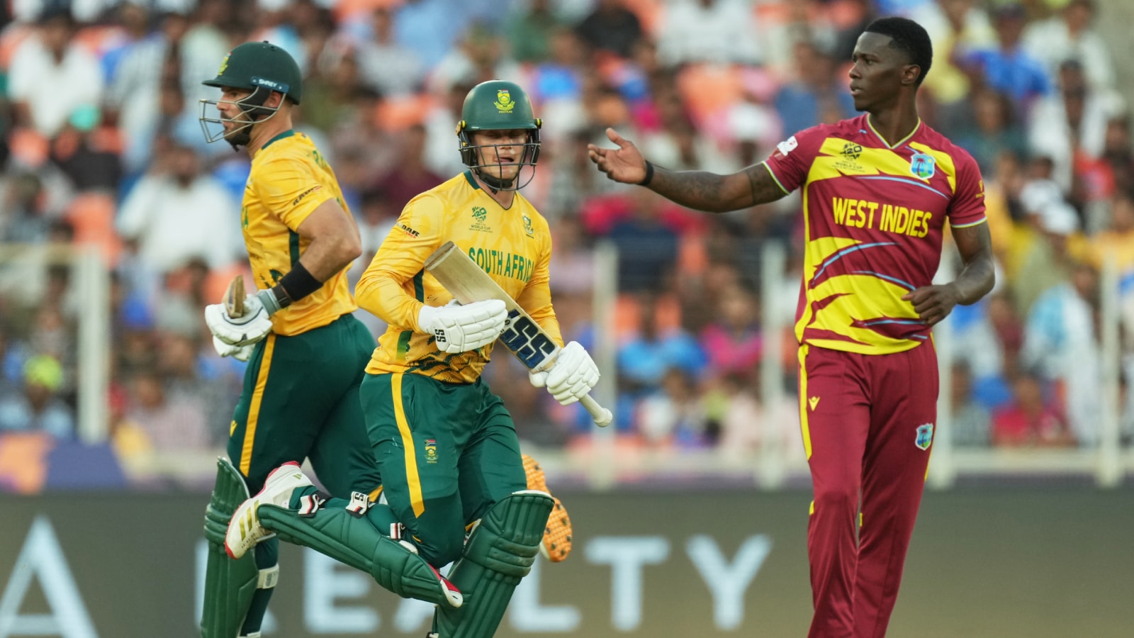 Opting to bowl, South Africa opened with spinner Keshav Maharaj but Shai Hope (16 off 6) showed early intent, launching him for two sixes and a four. At the other end, Brandon King (21 off 11) threw his bat around against Marco Jansen, collecting quick boundaries as the Caribbean side raced to 29 in just over two overs.