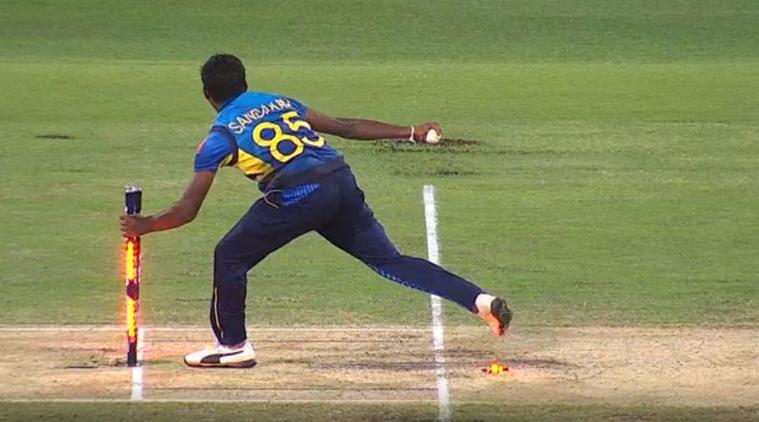 Sandakan picked up the ball after it had crashed into the non-striker’s stumps and uprooted the stumps – but forgot to touch the stumps with the ball.