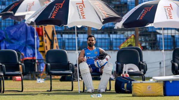India’s Virat Kohli during a training session ahead of their first test cricket match against Bangladesh in Chattogram, Bangladesh. (AP)
