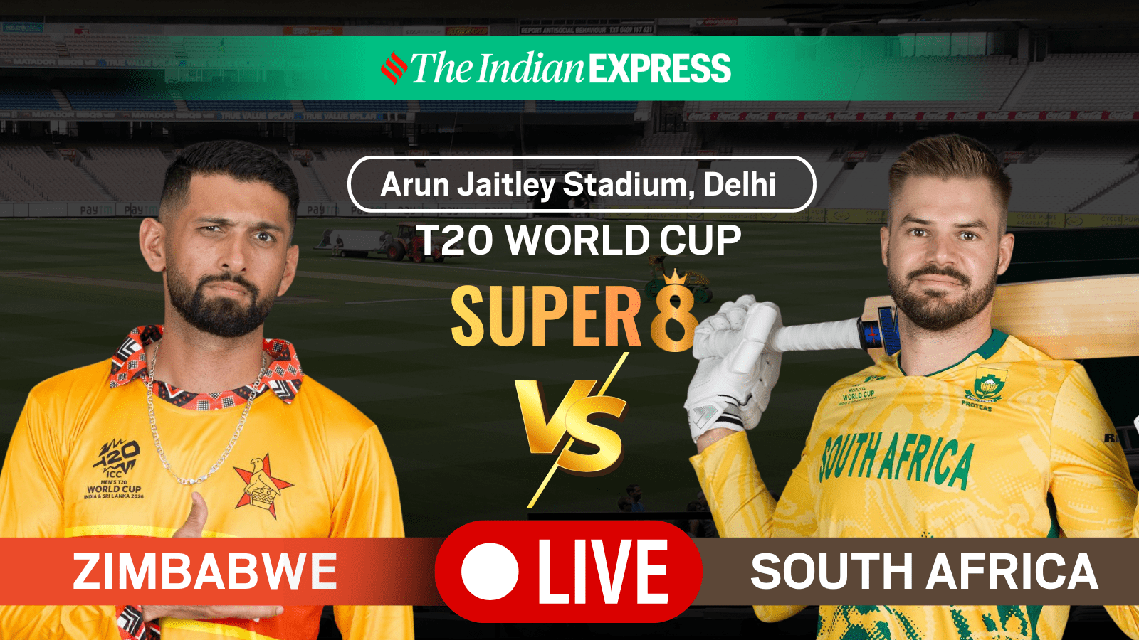 Hello and welcome to our live coverage of the Zimbabwe vs South Africa Super 8 game from the T20 World Cup