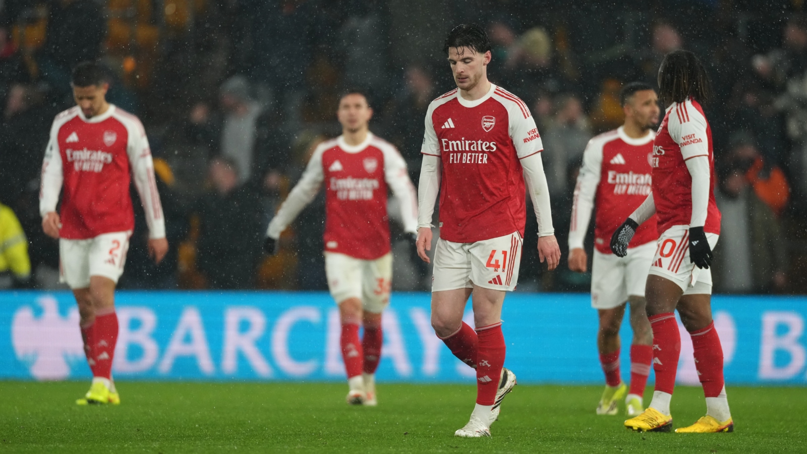 Arsenal players disappointed after drawing the Premier League match vs Wolverhampton Wanderers. (PHOTO: AP)