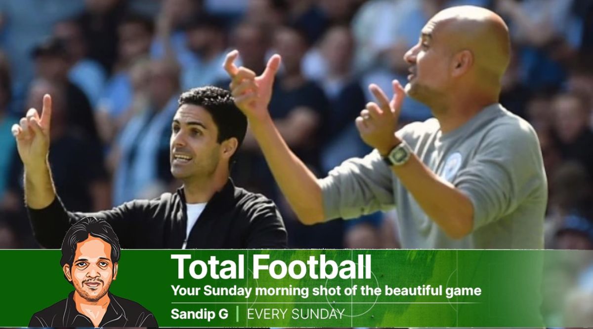 For a fleeting moment, they let themselves forget the brooding intensity of the game between the league champions and their prospective usurpers. Arteta waved an apology, breaking the characteristic sombreness into a warm smile; Guardiola graciously acknowledged the apology and flicked a thumb’s up. [A good to read Sandip G's weekly football column on the two managers tonight.]