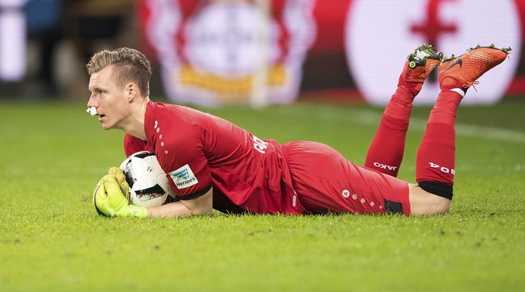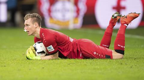 Felix Wiedwald saved a last-second penalty to preserve a 1-1 draw at Bayer Leverkusen. (Source: AP)