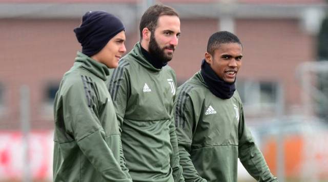 Paulo Dybala, Gonzalo Higuain and Douglas Costa during Juventus training. (Reuters Photo)