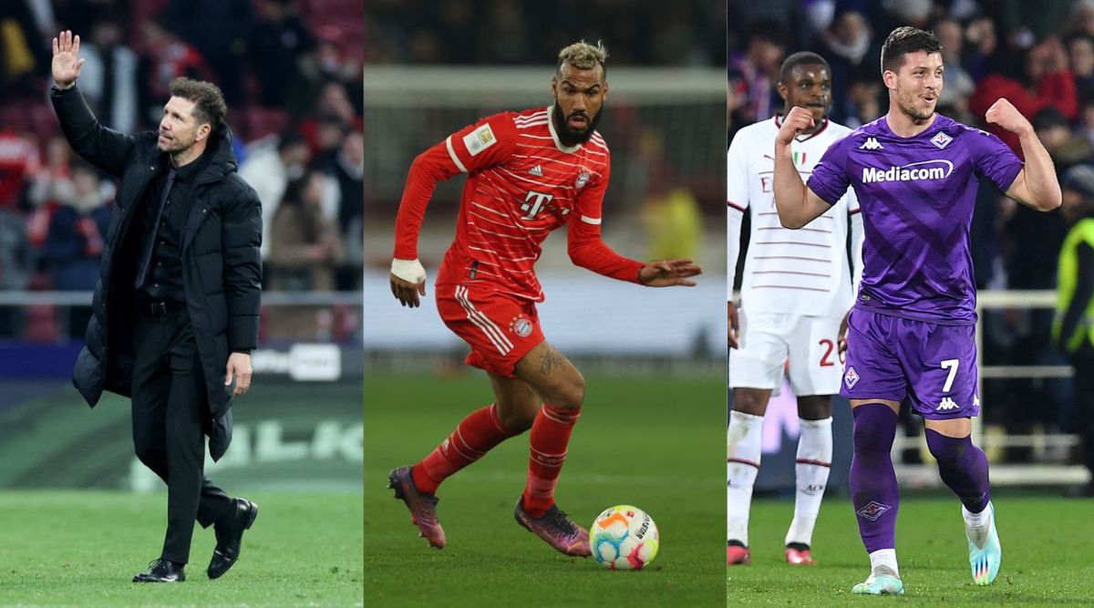 (L-R) Atletico Madrid coach Diego Simeone celebrates after the match, Bayern Munich's Eric Maxim Choupo-Moting in action, Fiorentina's Luka Jovic celebrates scoring their second goal (Reuters)