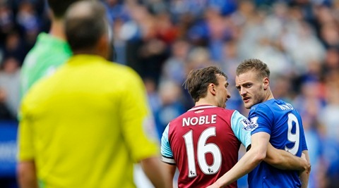 Vardy tangled with Angelo Ogbonna before going down in the penalty area early in the second half on Sunday. Vardy angrily confronted referee Jon Moss after receiving his first red card of the season.