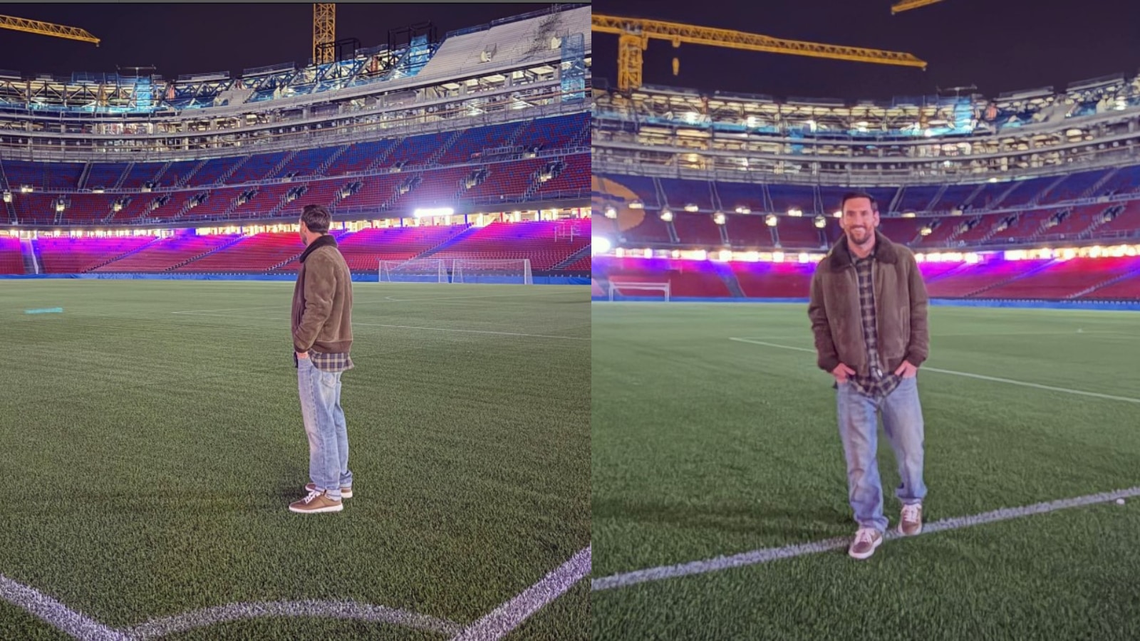Lionel Messi pays a visit to Camp Nou, which is currently undergoing renovation in order to expand its capacity. (Instagram/Lionel Messi)