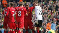 Liverpool made a typically fast start at Carrow Road, with Sterling putting the Reds ahead after four minutes when he received the ball from Suarez, shifted right and unleashed a shot from outside the box that grazed Michael Turner, giving John Ruddy no chance.