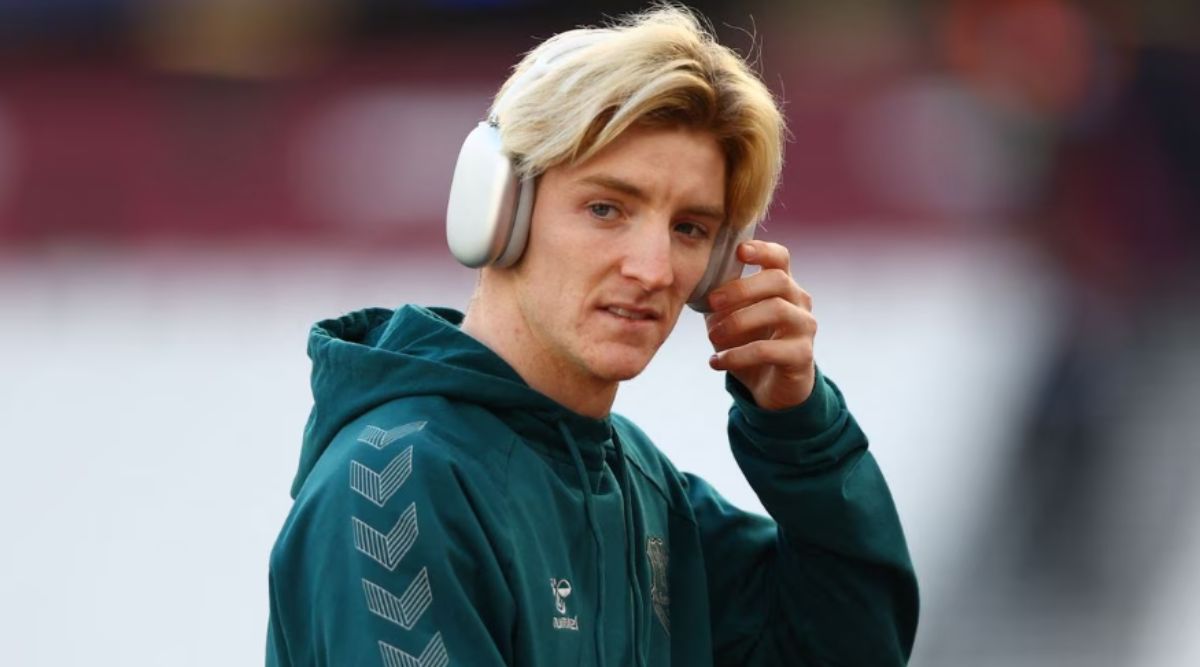 Everton's Anthony Gordon on the pitch before the match. (Reuters)