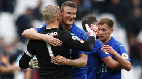 Vardy’s goal proved decisive after Andre Ayew’s second-half header put West Ham back in control. Ayew missed a chance to level when he struck over and Andy Carroll was twice denied from close range by Schmeichel.