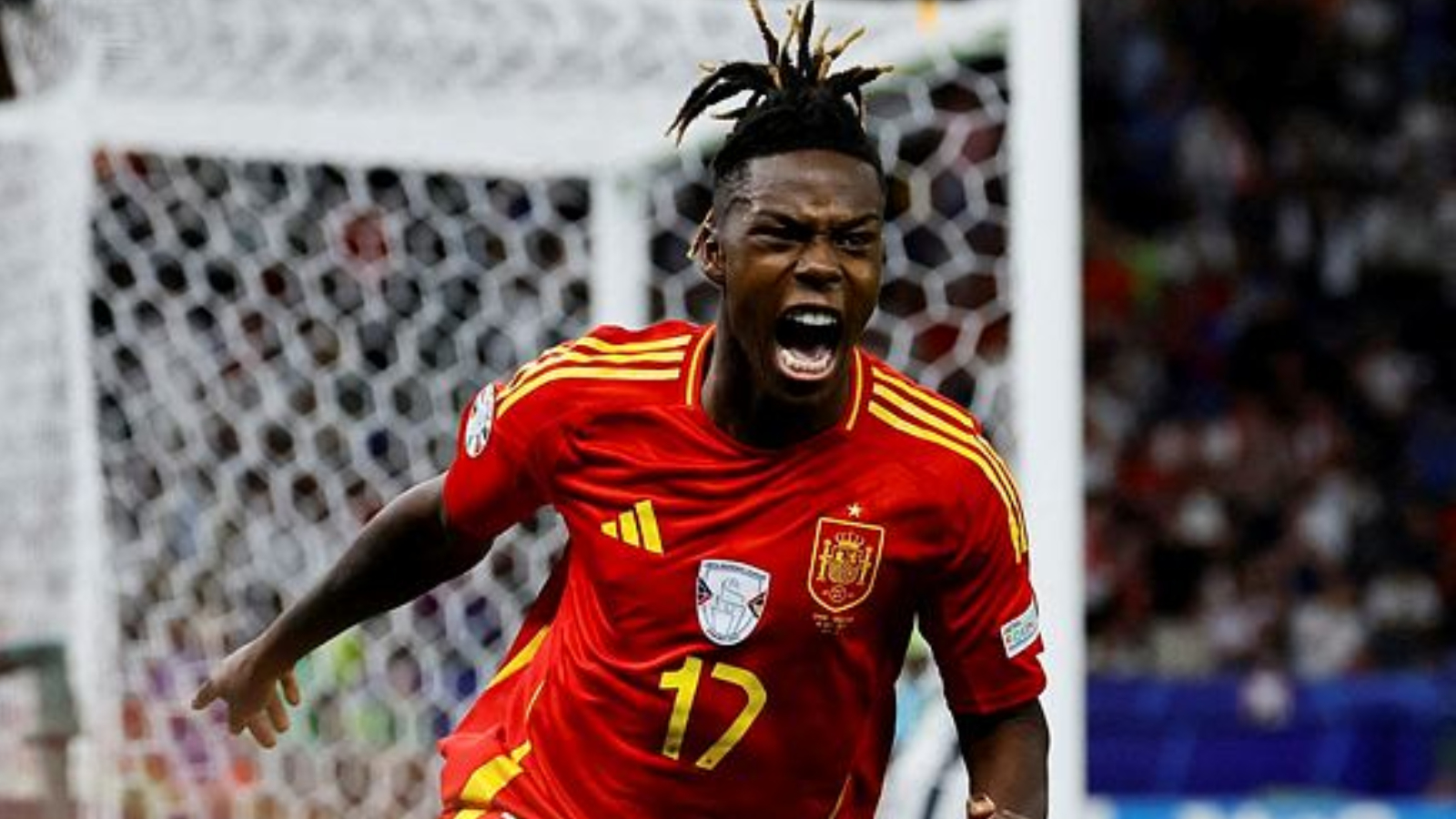 Nico Williams celebrates scoring Spain's first goal in the Euro 2024 final against England. (Reuters)