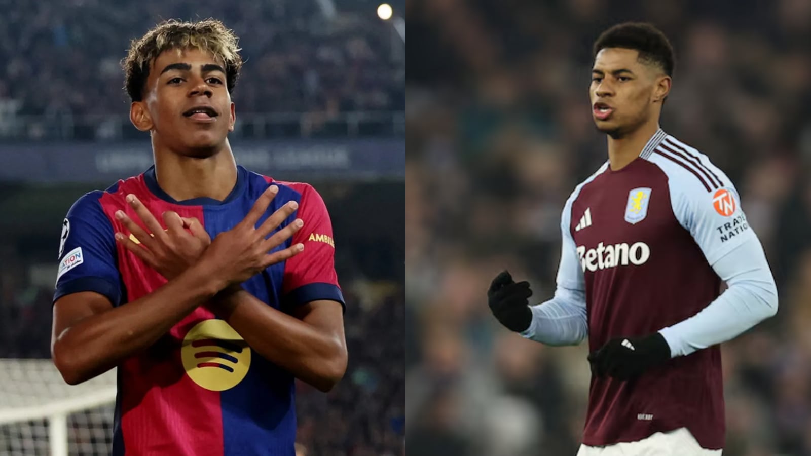 L-R: Barcelona's Lamine Yamal and Aston Villa's Marcus Rashford. (REUTERS)