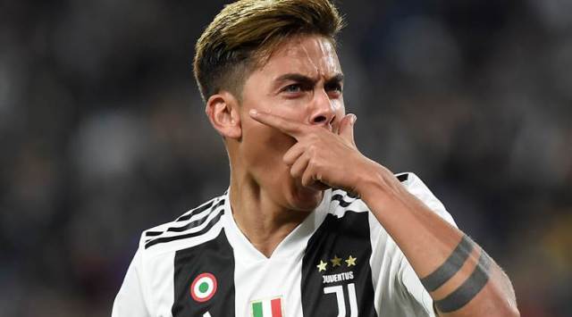 Juventus’ Paulo Dybala celebrates scoring their first goal. (REUTERS)