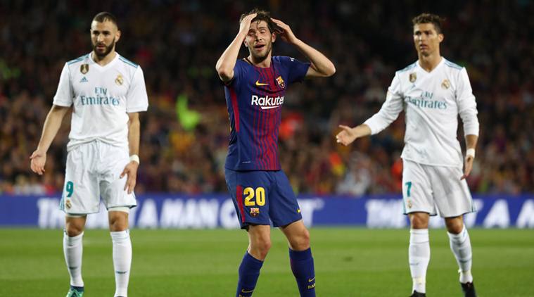 Barcelona defender Sergi Roberto will miss the rest of the Liga season and the first match of the next campaign after being given a four-game ban for striking Real Madrid’s Marcelo in last Sunday’s tension-filled 2-2 draw at the Nou Camp.