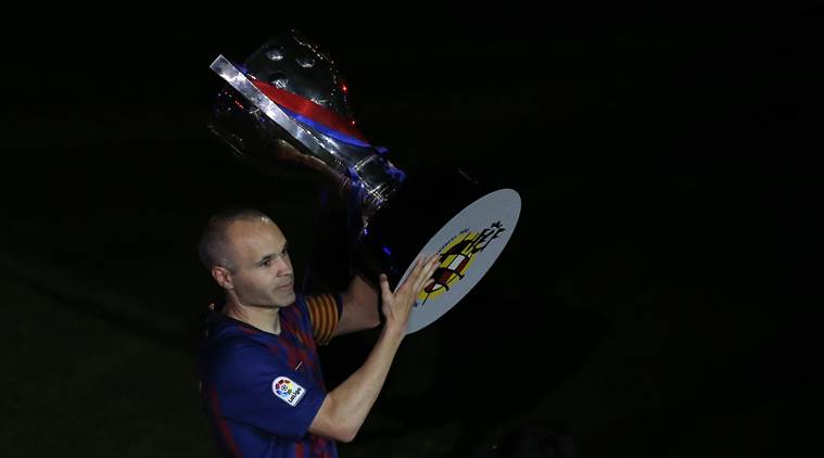 Andres Iniesta returned with his team mates after the final whistle to lift the club’s 25th Liga title and also show off the King’s Cup trophy which they won in April, beating Sevilla 5-0 in the final. (Source: AP)