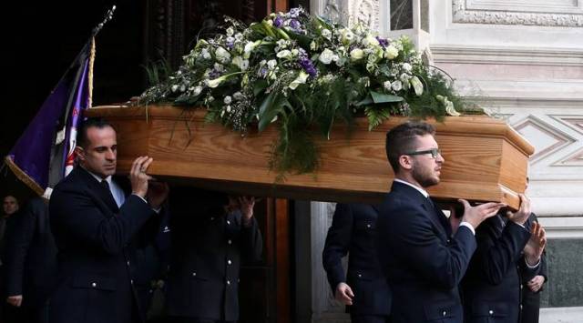 Thousands of people were also gathered outside Fiorentina’s stadium, where the funeral procession passed slowly on its way to the church.