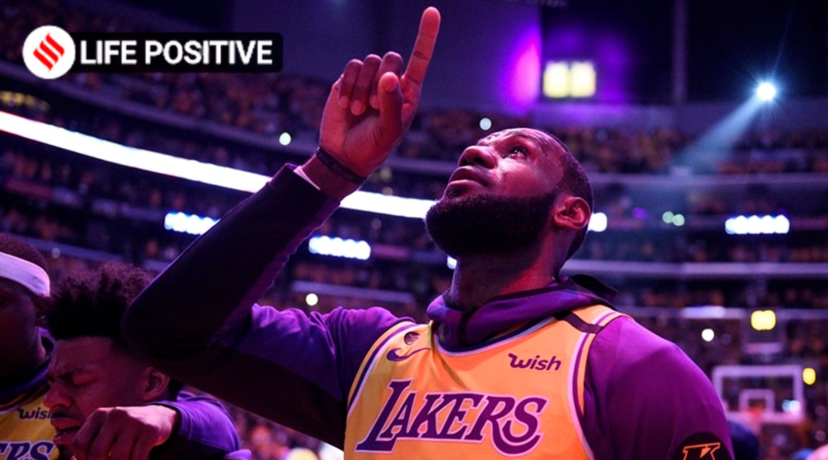 LeBron James, wearing a No. 24 jersey, points up while shedding tears after the national anthem before the team’s NBA basketball game against the Portland Trail Blazers in Los Angeles. (AP Photo)