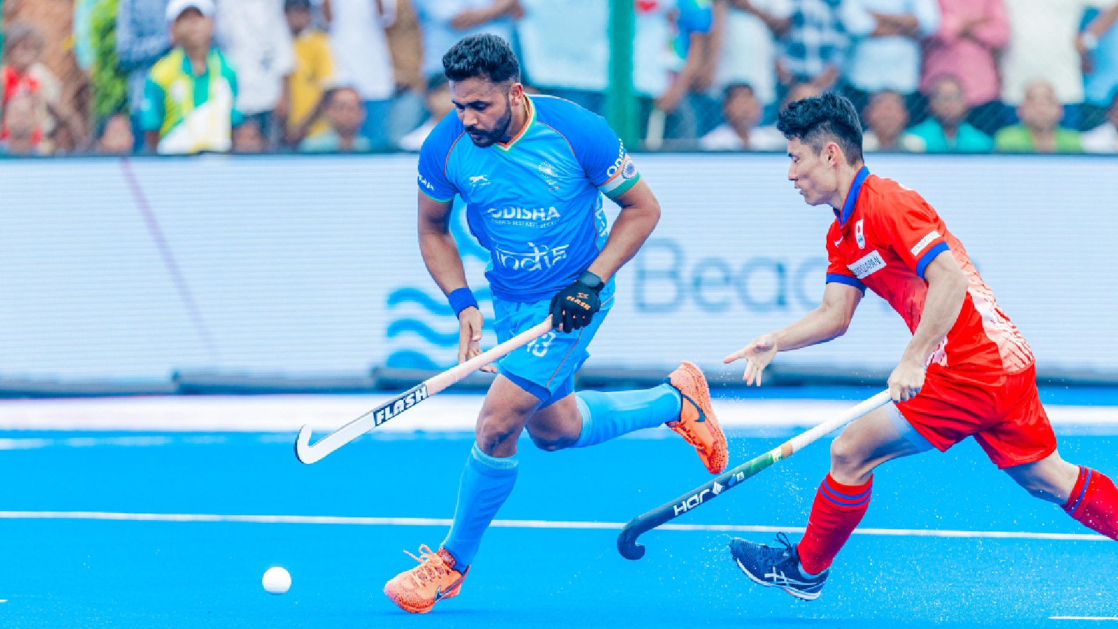 Scoreline: India 3 (Mandeep Singh 4′, Harmanpreet Singh 5′, 46′) vs Japan 2 (Kosei Kawabe 38′, 59′)