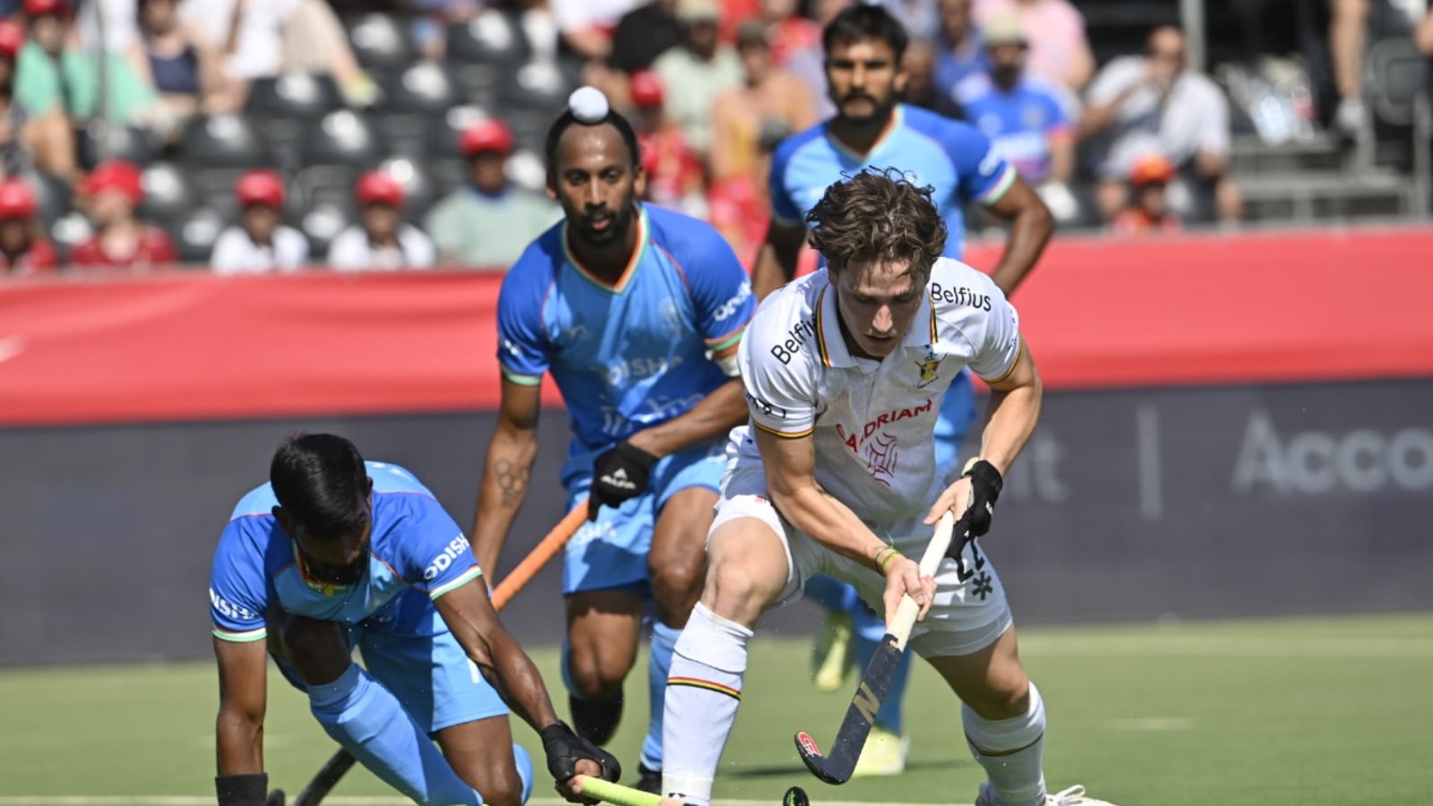 Belgium had three shots on the Indian goal inside the first minute. So intense was their pressing and so strong were they on the ball that the hosts barely gave India a moment to breathe. It must be a record of sorts that for the first 13 minutes and 10 seconds of the match, India could not even enter the Belgian ‘D’ even once.