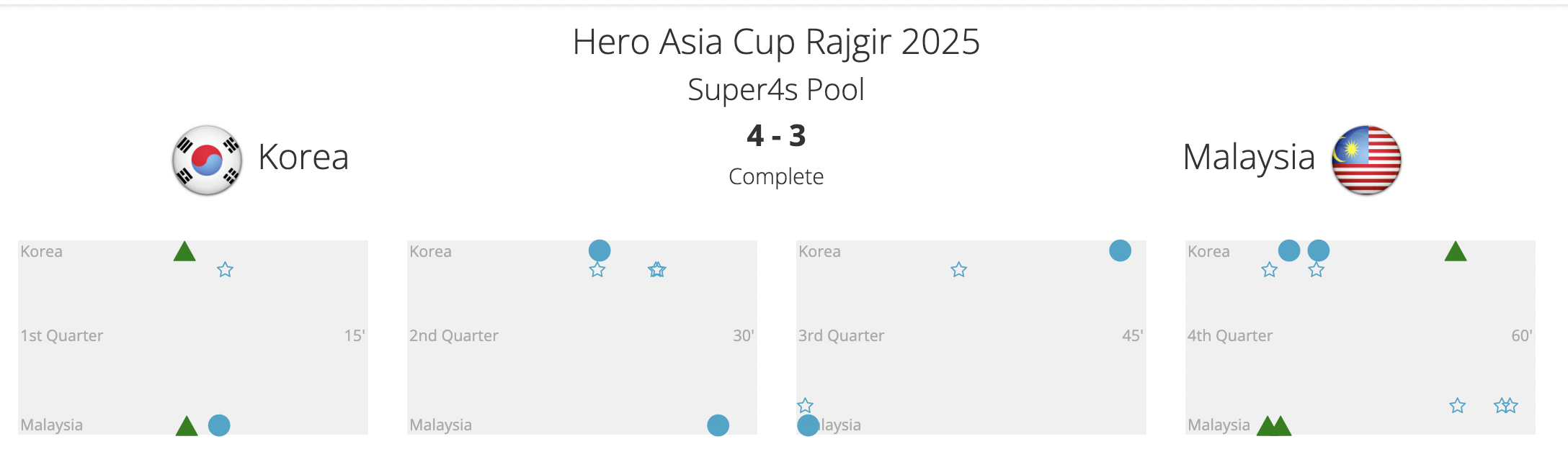 As we wait for India vs China, the Super 4s clash between Korea and Malaysia is coming to a thrilling finish.