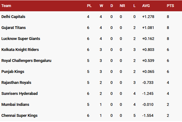 SRH vs PBKS Live Score, IPL 2025: Points Table