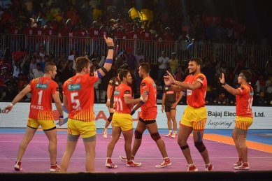 In the last 10 minutes of their match against Bengaluru Bulls, Gujarat Fortunegiants showed that they have the caliber to trounce any team in the fifth season of the Pro Kabaddi. Gujarat are now on a four-match unbeaten streak and it has come about due to a rock-solid defence and the performances of their youngsters. One could easily make out from coach Manpreet Singh’s celebration just how pleased he was with his team’s efforts in their 27-24 win over Bengaluru Bulls. “This win is special as the team didn’t lose hope,” Manpreet said. “Youngsters are leading the way for us. It is the best thing when youngsters step up and perform, Mahinder to aaj Tsunami leke aagaya,” he added.